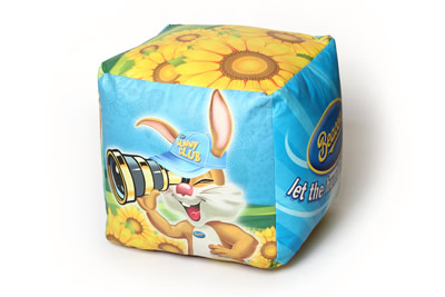 The platform allows for both silkscreen and digital print format branding, and then crosses over into the realm of artistic creation of Brand Characters in bean bag format.Our creative team are ready and able to develop new brand activation tools and products to meet your client's needs. Below are some examples of recent successful projects.